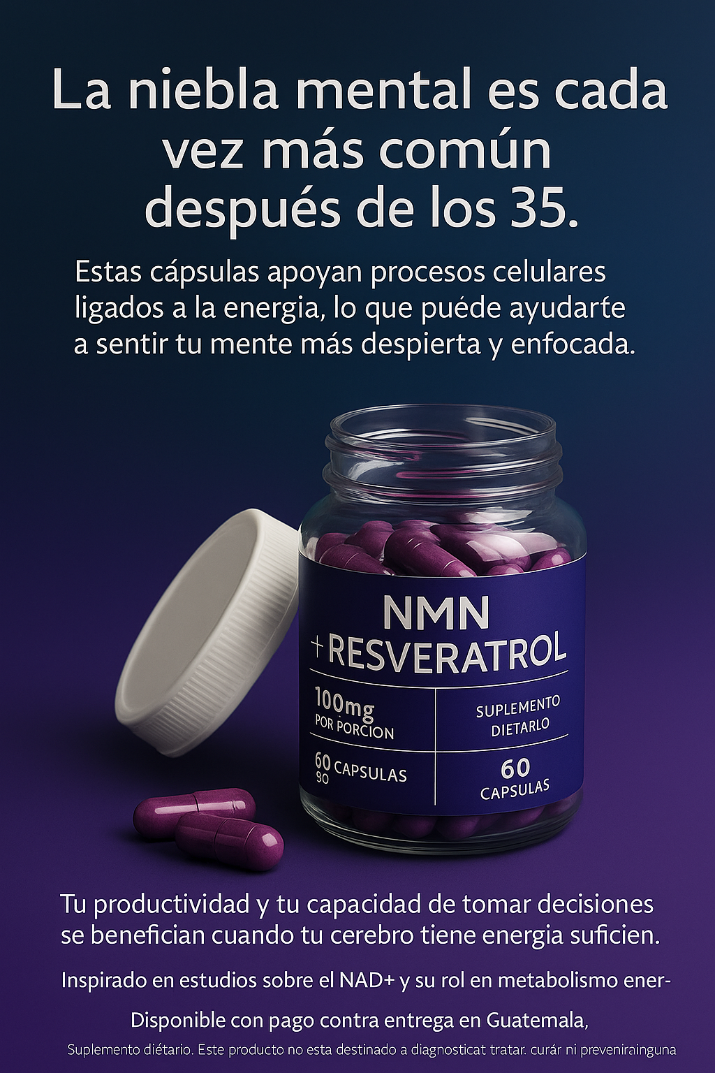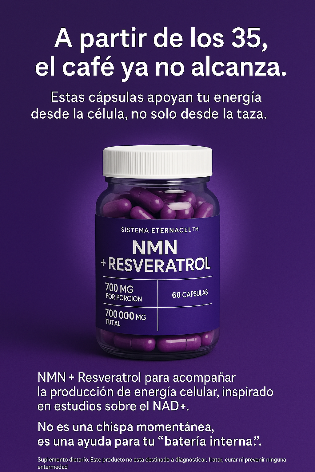 A partir de los 35 es normal sentir que la energía no alcanza. Estas cápsulas apoyan la producción de energía celular a través del NMN y el Resveratrol, para que no dependas solo del café. Estudios sobre NAD+ muestran su importancia en el metabolismo energético. No es una chispa momentánea, es una ayuda para tu “batería interna”.